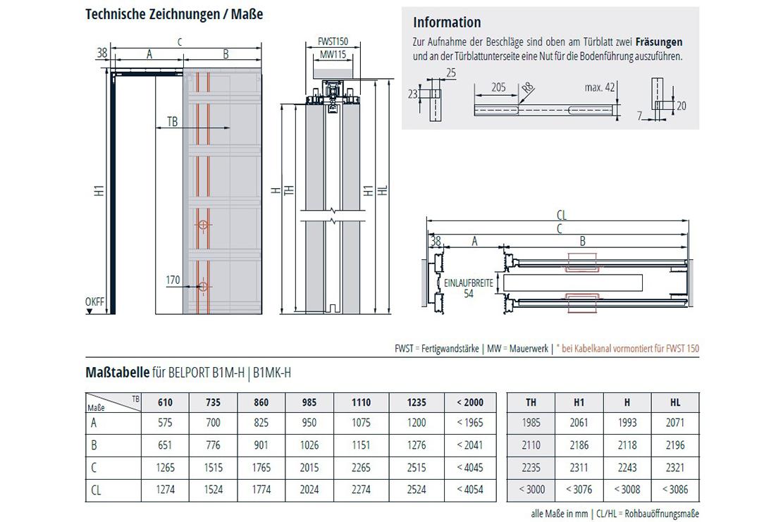 - Mögliche Türblatthöhe: 1965 – 3000 mm.