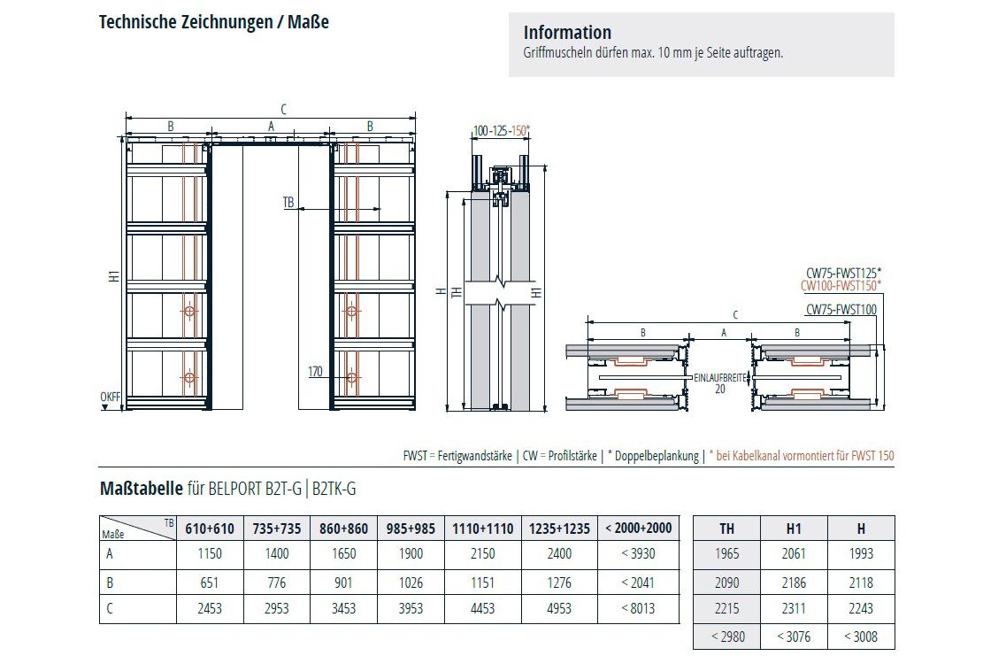 BELPORT B2TG Schiebetürsystem für zweiflügelige Glastürblätter in Trockenbauwänden & Holzständerwerken