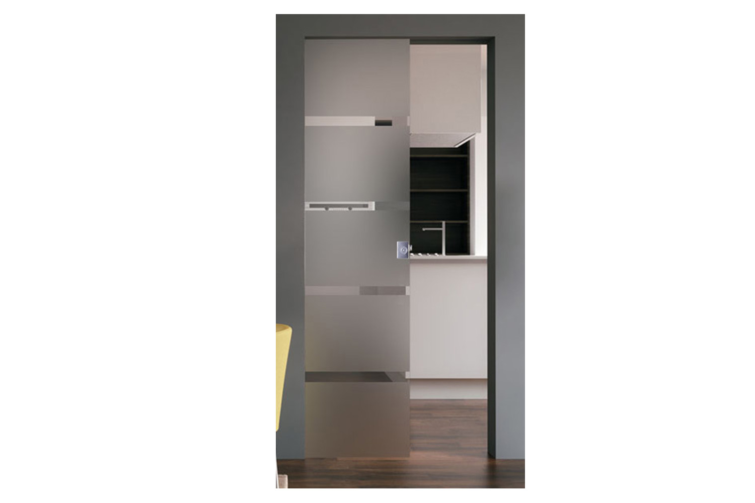BELPORT B1TG abschließbares Schiebetürkomplettset (Satiniert mit Streifen mit Stirnziehgriff) für Trockenbauwände