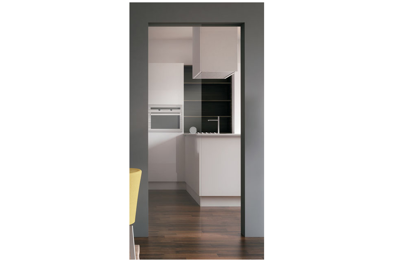 - Die Schiebetür läuft praktisch geräuschlos und leicht in der Wand. Sie lässt sich komplett unsichtbar in der Wandtasche versenken.
