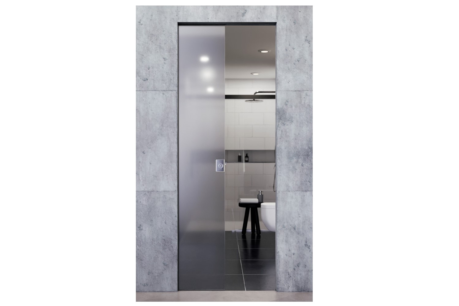 • Die Schiebetür läuft praktisch geräuschlos und leicht in der Wand. Sie lässt sich komplett unsichtbar in der Wandtasche versenken.