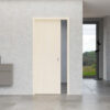 • Einflügeliges Schiebetürsystem in der Wand laufend